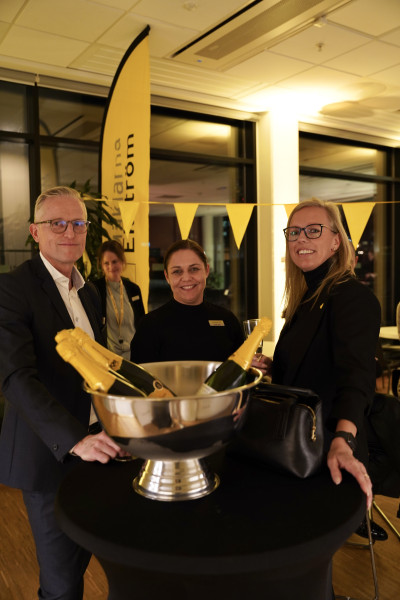 Invigningen firades inte bara för att vi öppnar ett nytt kontor. Vi firade också vårt nya samarbete med Sparbanken Syd, som nu är delägare i vårt bolag. Detta partnerskap stärker vår vision att erbjuda professionell och personlig mäklartjänst med ännu större resurser och möjligheter. Dessutom kan vi erbjuda en helhetslösning för våra kunder med Mäklarna Ekströms mäklartjänster och bolån genom Sparbanken syd. Sen delar vi även kärleken för att ge tillbaka till samhället och såklart den gula färgen!
