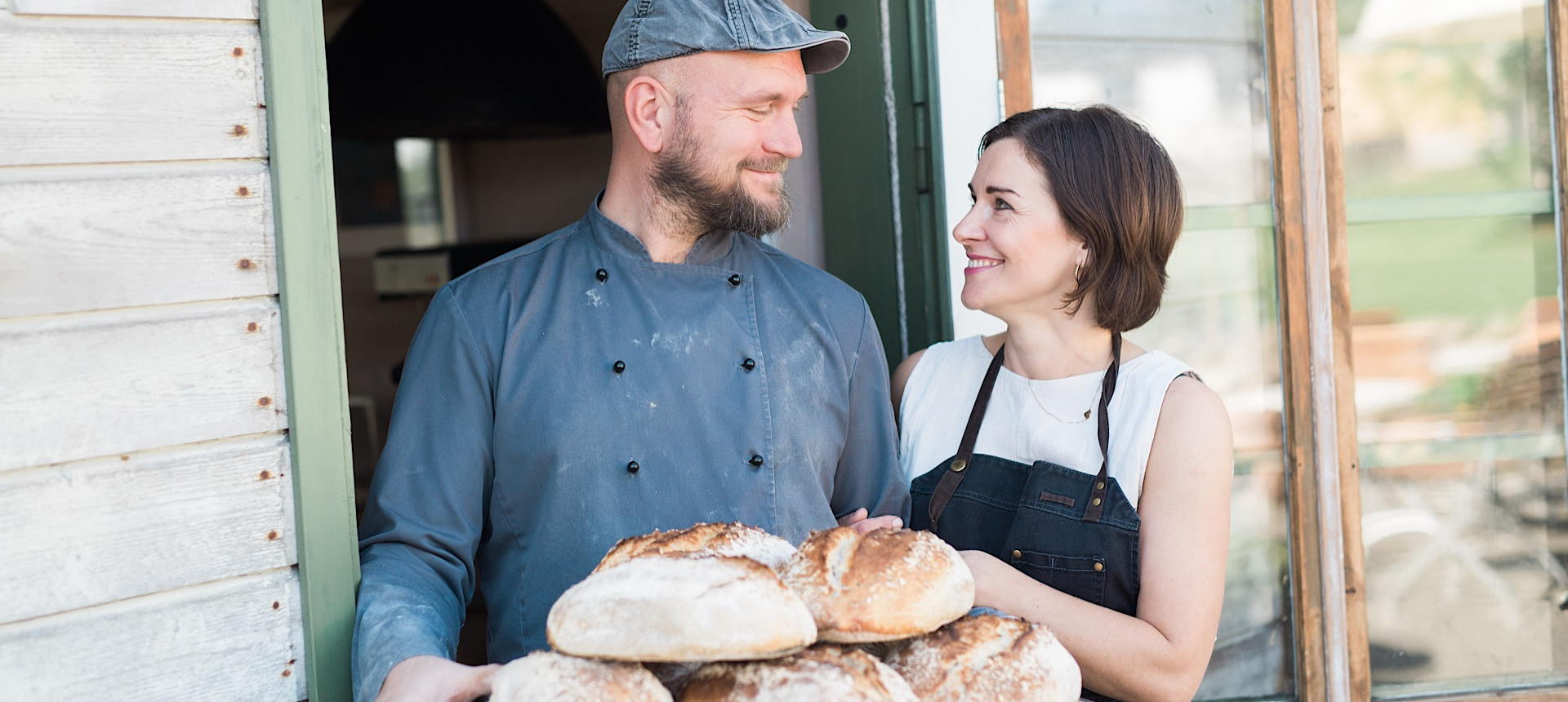 – Det var så jag blev förälskad i bakhantverket. Jag stod där med ett 20-tal italienare som sjöng och handknådade sina ekologiska bröd. Det var riktigt häftigt. Hemma hade jag tio skålar med surdegar som stod och bubblade för att jag ville testa olika grejor. Jag var helt nördig och bakade hela tiden. Under tiden i Köpenhamn träffade han Iwona och blev förälskad. Hon delade dessutom hans passion för bakande och hade med sig ett genuint kunnande från uppväxten i Polen. Så parallellt med sökandet efter en gemensam bostad grodde också tanken på en gemensam verksamhet. Från början tänkte de sig Malmö. I stället sökte de sig tillbaka till Mattis rötter och fann hösten 2012 det forna snickeriet mitt emot matbutiken i Sankt Olof. Fastigheten var nästan rivningsfärdig, men det fanns en själ och de såg möjligheterna. För två år sedan öppnade de sin verksamhet.