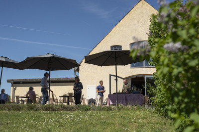Merparten av det vin jag producerar serveras här på gården. Det skiljer mig från många av mina kollegor. Ekonomiskt är det den mest lönsamma lösningen. Dels finns det inga mellanhänder och dels köper du ju vinet per provning och glas. Literpriset blir betydligt högre här än på Systembolaget, vilket är en viktig del av mitt koncept.