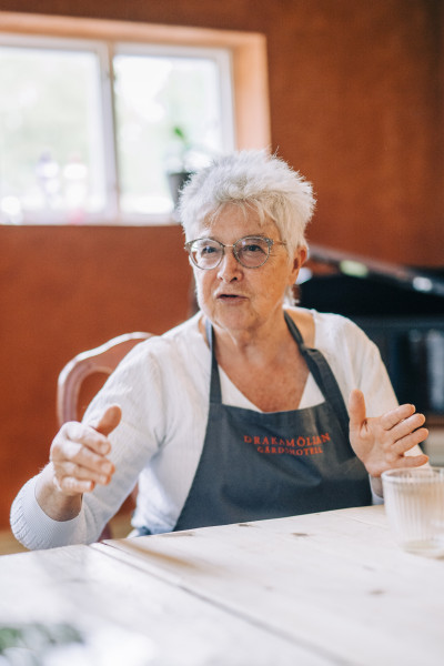 Det är stilla och tyst med en ljummen förmiddagssol som sprider ett milt ljus över skogen och de kuperade gräshagarna. Hästarna har börjat röra sig längre upp i backarna och flocken av fågelskådare, som dök upp tidigt på morgonen på jakt efter sommargylling, har också dragit vidare. Under tiden har de amerikanska konferensgästerna hunnit vakna till en ny dag, Gårdshotellets ägare Ingalill Thorsell har slagit sig ner tillsammans med hotellchefen Lena Stålhammar och kökschefen Paulina Kwiatkowska för att planera dagen, medan gårdens labradorer Kofi och Obama lufsar omkring i trädgården.Vardagarna är under större delen av året vikta för konferensgäster, men under sommaren fylls hotellet av turister sju dagar i veckan.– Våra gäster kommer hit för att de söker avskildhet och lugn och ro. Här blir du sedd och får framför allt god mat, säger Lena.När Ingalill köpte Drakamöllan för 26 år sedan var det en nedgången ödegård. Från början var det namnet som drog henne till platsen. När hon väl kom dit blev hon lika tagen av miljön.Den ursprungliga tanken var att renovera delar av gården och kombinera ett eget boende med ett litet bed and breakfast. Hon flyttade själv in i mangårdsbyggnaden och gjorde i ordning rum för uthyrning i bagarstugan, dit de första gästerna anlände 1998.– Jag tänkte att jag kunde låta resten stå. Men det gick ju inte. Det uppstod en obalans. Om man vill ha harmoni på en gård kan inte en del rustas upp och en annan förfalla. Man måste ta sig an allt.Drakamöllan har blivit framgångsrikt genom att våga bryta mot hotellbranschens normer. Här finns ingen minibar eller tv på rummet. Det krävs också lite ansträngning för att komma innanför dörrarna. Bokningsportaler och internetbokning har valts bort. Det är personlig kontakt via telefon eller e-post som gäller.Restaurangen är enbart öppen för hotellgästerna, utom vid några enskilda tillfällen om året, exempelvis den traditionella söndagsmiddagen som serveras sista söndagen i varje månad mellan augusti och juni.– Redan från början bestämde vi oss för att koncentrera oss på gårdens gäster och inte ha en öppen verksamhet där många människor flödar igenom. Det gör det också mer hållbart. Genom att göra som vi gör har vi minimerat slitaget, säger Ingalill.Därmed inte sagt att Drakamöllan är helt slutet. Tvärtom öppnar sig verksamheten mot världen åtskilliga gånger om året med operaföreställningar, Matrundan i maj och Nordiska Dagar i augusti. I år hölls även en operafestival i juni för att fira hotellets 25-årsjubileum.Kopplingen mellan Drakamöllan och opera uppstod genom att operasångaren Guido Paevatalu vandrade in på gården för 23 år sedan, knäppte med fingrarna för att kontrollera akustiken och konstaterade att platsen var perfekt för konserter.Drakamöllans koncept bygger på en alldeles egen strategi. Den bärande visionen har varit att verksamheten ska hålla sig innanför väggarna och att den ursprungliga gårdsmiljön ska bevaras. I övrigt har Ingalill följt sitt hjärta och sina instinkter.– Varje gäst som går ut genom dörren ska vara en ambassadör. Jag tror att alla som kommer hit upplever att de blir en del av Drakamöllans familj.TEXT: Johan Bentzel | FOTO: Rebecca Wallin