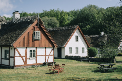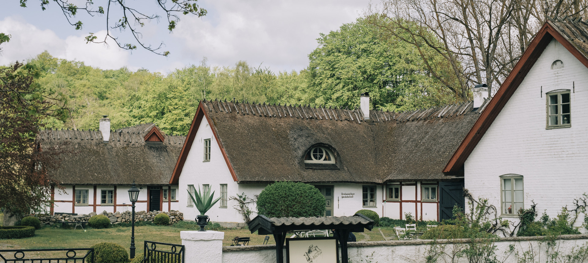 Vid slutet av en grusväg i det böljande skogslandskapet i Brösarps norra backar uppenbarar sig en samling korsvirkeshus med vasstak, kullerstensgångar och omgivande buxbomshäckar. Det är som att anlända till en sagovärld. Men detta är Drakamöllan Gårdshotell, en högst verklig plats, om än unik i sitt slag.
