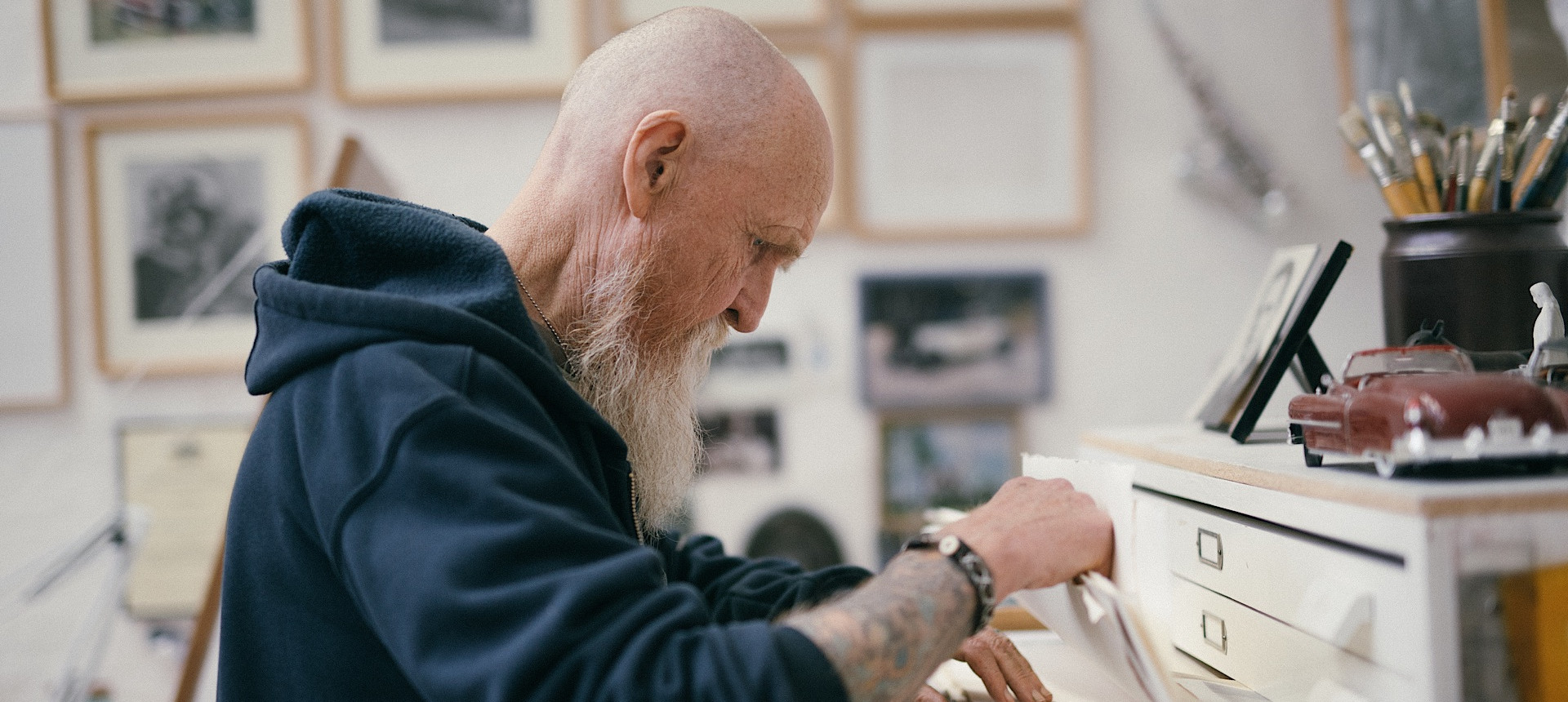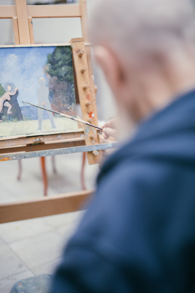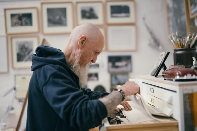– Jag blev tillfrågad av Nationalmuseum. Kungafamiljen hade sett ett av mina porträtt och undrade om inte jag kunde måla dem också. Jaha, tänkte jag, jag försöker. Men det skulle jag aldrig ha gjort. Det var tungt. Jag är så långsam också. Det där med deadline har jag aldrig förstått mig på. Det tog ett år att göra klart målningen. Jag gick ner 20 kilo på kuppen och var jättenervös. Jag jobbade hårt. Det kändes som om jag aldrig blev klar. Inför arbetet var vi på Drottningholm och tog en massa foton med storformatskamera. De blev kanon. Tidningen Vi ville publicera dem och det gick vi med på tills vi insåg vad vi hade gjort. Det var ju inte rätt. Vi blev förtvivlade och insåg att vi verkligen hade trampat i klaveret. Jag lyckades stoppa pressarna precis i tid. Jag låg på mina bara knän och bönade och bad.