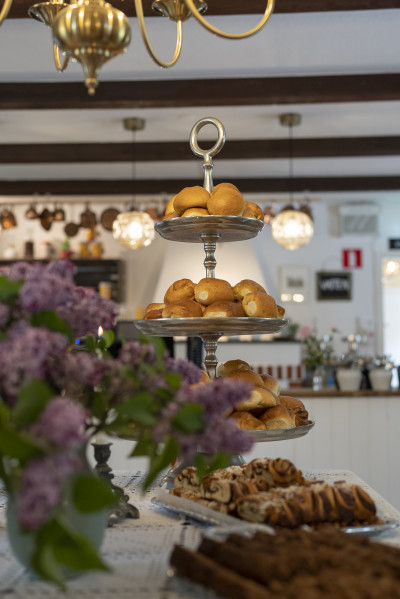 Det finns en förväntan om vad som ska stå på bordet i serveringsrummet: dignande fat med sju sorters kakor, givetvis krönta av den eftertraktade Annorlundabullen, och för ett fast pris ska det gå att äta hur mycket man vill.Så har det varit sedan Astrid Lindqvist startade kaféet för 65 år sedan och så ska det förbli. Traditionen är stark. Den rubbar man inte på i första taget. Samtidigt finns det ett behov av att låta nya idéer sippra in, för att hitta nya besökare och tillfredsställa andra smaker och behov.De nuvarande ägarna Catharina Feuk och Johan Eriksson, som tog över 2015, har med finkänslighet och fingertoppskänsla lyckats skapa ett modernt Annorlunda utan att förlora verksamhetens rötter och särart.– Varje år har vi försökt göra något nytt. Nya utmaningar är det som gör att man lever vidare, säger Johan.Bryggkaffet är ersatt av finare bönor, en mjukglassmaskin har kommit på plats och kakbuffén har fått sällskap av både ett lite matigare utbud, exempelvis räkmackor, och andra godsaker som morotstårta och cheesecake.En inglasad disk gör att besökarna numera kan beskåda utbudet med egna ögon innan de beställer. Kakbuffén har dessutom kompletterats med ett åttonde bakverk: en vetelängd.I kaffestugans källare finns ett stort bageri och det är faktiskt Catharina själv som bakar merparten av de kakor och bakverk som serveras på Annorlunda, även om hon på sommaren har hjälp av den övriga personalen.Recepten är desamma som på Astrid Lindqvists tid och det är tur att Catharina tycker att det är kul att baka.– På sommaren bakar vi 2 000 kakor om dagen, säger hon.Förra årets stora nyhet var surdegspizzor, som blev en stor framgång, och årets nytillskott är en liten butikshörna med lokala produkter samt en fikakasse, som förbipasserande kan ta med sig till stranden.Nytt för säsongen är också ett serveringstillstånd, som gör det möjligt att ha restaurangkvällar med vin till pizzorna.– På kvällarna hade vi tänkt att hålla oss på innergården, men om det är dåligt väder är det också möjligt att sitta här inne, säger Catharina.Hon berättar att beslutet att köpa kaffestugan var ganska impulsivt. De hade redan tankar på att driva en verksamhet ihop och när de såg på Hemnet att Annorlunda var till salu kände de direkt att det vore något för dem. De åkte dit för att titta och insåg potentialen.Tidigare bodde de i Stockholm, där Catharina jobbade på Google och Johan som brandskyddskonsulent. Det tog ett tag innan de vågade släppa taget helt. De första fem åren delade de sin tid mellan sina ordinarie jobb i huvudstaden och verksamheten på Österlen.Men när äldsta barnet skulle börja i skolan bestämde de sig för att flytta permanent till Kivik och här har familjen utökats med två hundar och fem hästar. Österlen har blivit hemma och flytten har även påskyndat utvecklingen av kaffestugan.– Nu hinner vi ju med så mycket mer. Det är ett annorlunda sätt att leva, säger Johan och berättar att de utöver kaffestugan driver ett gym i Kivik och även hjälper till på Kiviks camping, som drivs av Catharinas föräldrar.TEXT: Johan Bentzel | FOTO: Rebecca Wallin