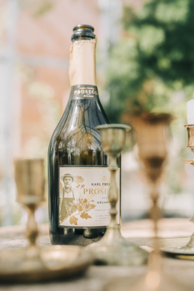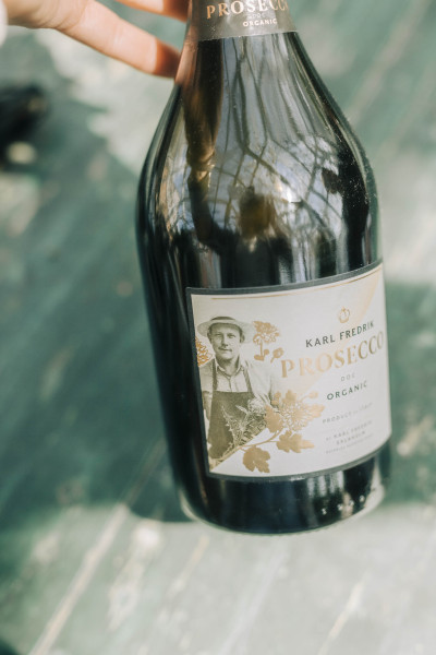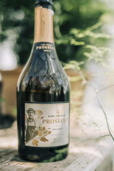 – Vi fick en förfrågan om ett samarbete från en vinagent, och det är ju ingen hemlighet att jag och Petter, eller kanske framför allt jag, är livsnjutare och tycker om det goda i livet: mat, dryck, blommor och allt vackert. Så när vinagenten frågade vad vi ville göra, svarade vi ”ett bubbel”. Att det blev en Prosecco berodde på att vi tyckte att det var viktigt att vinet var ekologiskt, rikligt bubblande och inte för sött. Alla de detaljerna ledde fram till det här. Producenten finns i nordöstra Italien. Det är det kändisvin som under alla tider har sålt bäst under sin första försäljningsperiod och efterfrågan är fortfarande stor.