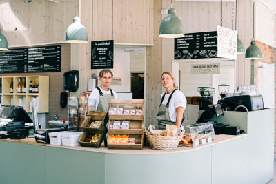 Den ursprungliga idén var ett litet kafé, med betoning på litet, en ambition som har överskridits med råge. I dag har de tre verksamheter, inklusive ett gårdshotell i Kåseberga, och närmare 70 anställda, om även sommarpersonalen räknas in.