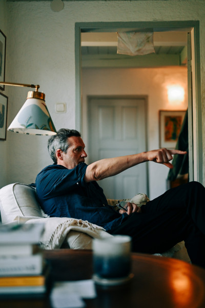 – Jag hade sökt till Stockholm och Malmö innan jag kom in i Göteborg. Känslan var lite grann som när jag nu anländer till Österlen: axlarna släppte ner. Då, när jag var 23 år, visste jag inte riktigt vad det innebar. Jag visste bara att jag bland tusen sökanden var en av de sju som hade kommit in och vad jag skulle göra de kommande fyra åren. Det var skönt. Sedan tog det ett tag att komma underfund med uttrycksbehovet. Det var en unik utbildning, som gav mig självförtroende inom ett yrke som jag eventuellt visste att jag hade en talang för. Jag fick med mig förståelsen för vad den fysiska gestaltningen innebär. Det finns ett slags kodspråk på Scenskolan kallat Yat, där man talar om fysiska rörelser ungefär som noter. Tydliga fysiska uttryck behövs på en scen, och det fick jag med mig.