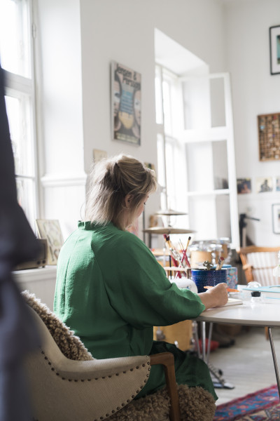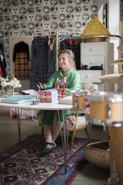 Under en lång tid fungerade Sanna Persson Halapis arbetsrum i bostaden i Valleberga som ett osorterat och ogenomträngligt lager för diverse föremål som livet egentligen inte hade plats för längre eller inte var i behov av här och nu.Ett sådant där slukhål som börjar fyllas på utan något direkt mål och där avsikten ursprungligen kanske är att ganska omgående börja rensa upp och ur, men där tiden får gå samtidigt som nya prylar behöver stuvas undan.– Jag har bara öst in grejor och stängt dörren.Var börjar man när det känns försent? Med det första som ligger i ens väg och därefter en sak i taget. Ur oreda växer ordning och steg för steg går det att skönja en struktur, ett mönster, en ny väg framåt.Minnen från ett händelserikt liv omger en. En del är värt att hålla fast vid, annat behöver försvinna för gott. Det som är kvar blir en klangbotten att ta avstamp i. Ny inspiration växer och plötsligt tycks möjligheterna oändliga.När Sanna visar vägen in i det nystädade arbetsrummet är intervjun egentligen redan över, men känslan blir som att bläddra tillbaka i de nyligen gjorda anteckningarna. Allt finns ju här.”New Yorker” och skissblock på skrivbordet. Foton på komikerpar som Hasse & Tage och Helan & Halvan. Rekvisita från pjäsen ”Kalla det vad fan du vill”, som bygger på Marjaneh Bakhtiaris bok med samma namn.Instrument, peruker, hattar, kläder. Den tydligt ironiska boken ”Guds gåva till kvinnan” med en brett leende David Hasselhoff i en hjärtformad bild på omslaget. Mumintroll. Åtta pipor i ett ställ. Ett foto på Sanna själv i en ram med ett trasigt glas, från ”Hjärtats oro”, en SVT-dramatisering om Hjalmar Söderbergs liv.Det är som slutscenen i filmen ”De misstänkta”, där det slutligen går upp för den utredande polisen att varje del av bedragaren Roger ”Verbal” Kints detaljrika historia om händelserna som ledde fram till massakern och branden på skeppet i hamnen har ljugits ihop utifrån slumpmässiga föremål i förhörsrummet.Skillnaden är att föremålen i Sannas arbetsrum vittnar om saker som faktiskt har hänt eller har haft verklig betydelse i hennes liv. Sådant hon precis har berättat om.– När jag får scenskräck tar jag alltid fram den här.Sanna lyfter upp ett svartvitt fotografi på sitt fyraåriga jag: en sprallig tjej som ler oförställt in i kameran. Som tycks säga: Var redo världen, för här kommer jag!– Det här är vad jag hela tiden eftersträvar: leken, lusten och att inte vara rädd. Den här bilden har allt som man vill ha nu: glädjen, stövlarna på fel fötter och lust så att fingrarna spretar. Men den känslan är svår att hitta i dag.De flesta som möter Sanna i hennes yrkesroll skulle nog hävda det motsatta, att hon alltid med stor espri sprider både lust och glädje till sin omgivning.Ett diplom för Årets Ljusspridare, som står lite undanskymt i fönsterkarmen, beskriver henne som en skådespelare och komedienn inom teater, film, revy och spex som ”fångar ljus och mörker i omöjliga figurer och skrattspeglar som reflekterar hennes mångsidiga begåvning”.Och det är främst via oförglömliga karaktärer som den grönhåriga rymdvarelsen Pax, den pratglada reseledaren Jolanta Jonsered och urtrelleborgaren Irene Gren som världen har lärt känna henne. Det är figurer som alla på vart och sitt sätt både hörs och syns.Jolanta är blixtsnabb i repliken, oavsett om den är skriven på förhand eller improviseras i stunden. Hon är överallt och ingenstans, med tentaklerna långt ut i lokalen, samtidigt som hon har full koll på dem som sitter närmast. Ett socialt geni, om än lite påstridig.Privatpersonen Sanna är betydligt mer eftertänksam, försiktig och låter gärna orden dröja en stund innan hon svarar på en fråga. Hon talar också ganska tyst och verkar inte helt bekväm med att stå i fokus.Därför är det så fascinerande att se hur hon inom loppet av en sekund kan slå om till en helt annan personlighet, bara genom att kliva in i en roll. Hon blir kvick, högljudd, spontan och tar plats i rummet. Hennes hållning blir resligare, hennes blick intensivare.– Jag blir ett slags upphöjd version av mig själv, för jag är dessutom mycket smartare när jag är de här personerna. När jag är Jolanta kommer jag till exempel plötsligt ihåg vad alla heter.Det är tydligt att Sanna inte är ett dugg svartsjuk på dessa färgstarka figurer som står i rampljuset och skuggar hennes verkliga jag. Tvärtom är hon tacksam över att det är Pax och Jolanta som möter publiken och får dess uppskattning. Vem som döljer sig bakom perukerna och sminket är irrelevant.– Alla de här karaktärerna är så mycket mer säkra på sin sak än vad jag är. De vet precis vad de tycker och vad de vill. Det finns ingen tvekan. Själv är jag så otroligt velig och osäker på många sätt. Därför är det så skönt att få vara dem. Det är underbart, en lättnad. Som att ha semester.Sanna upptäckte komiken redan som barn och beskriver sig som en typisk uppmärksamhetssökande lillasyster, som hela tiden ville få folk att skratta. Hon hittade kul plagg i familjens utklädningsgarderob och klädde ut sig till olika gubbar. En favoritsysselsättning var att härma grannarna.I skolan var hon ett stående inslag på roliga timmen och skrev och regisserade kabaréer med stark inspiration av Monty Python, Hasse och Tage, Galenskaparna, Sven Melander och Eva Rydberg.Passionen för humor och skådespeleri spillde till och med över på de vanliga ämnena. Om hon höll ett föredrag om Wien på geografilektionen gjorde hon det som Werner & Werner och pratade högt och glatt om Schwarzwaldtårta. Ett återkommande tema var att avsluta föredragen med simulerade självmord, harakiri. Allt för ett skratt.– Det är skönt att få gömma sig bakom karaktärer och få vila lite från sig själv. Det är ju skitläskigt att hålla föredrag